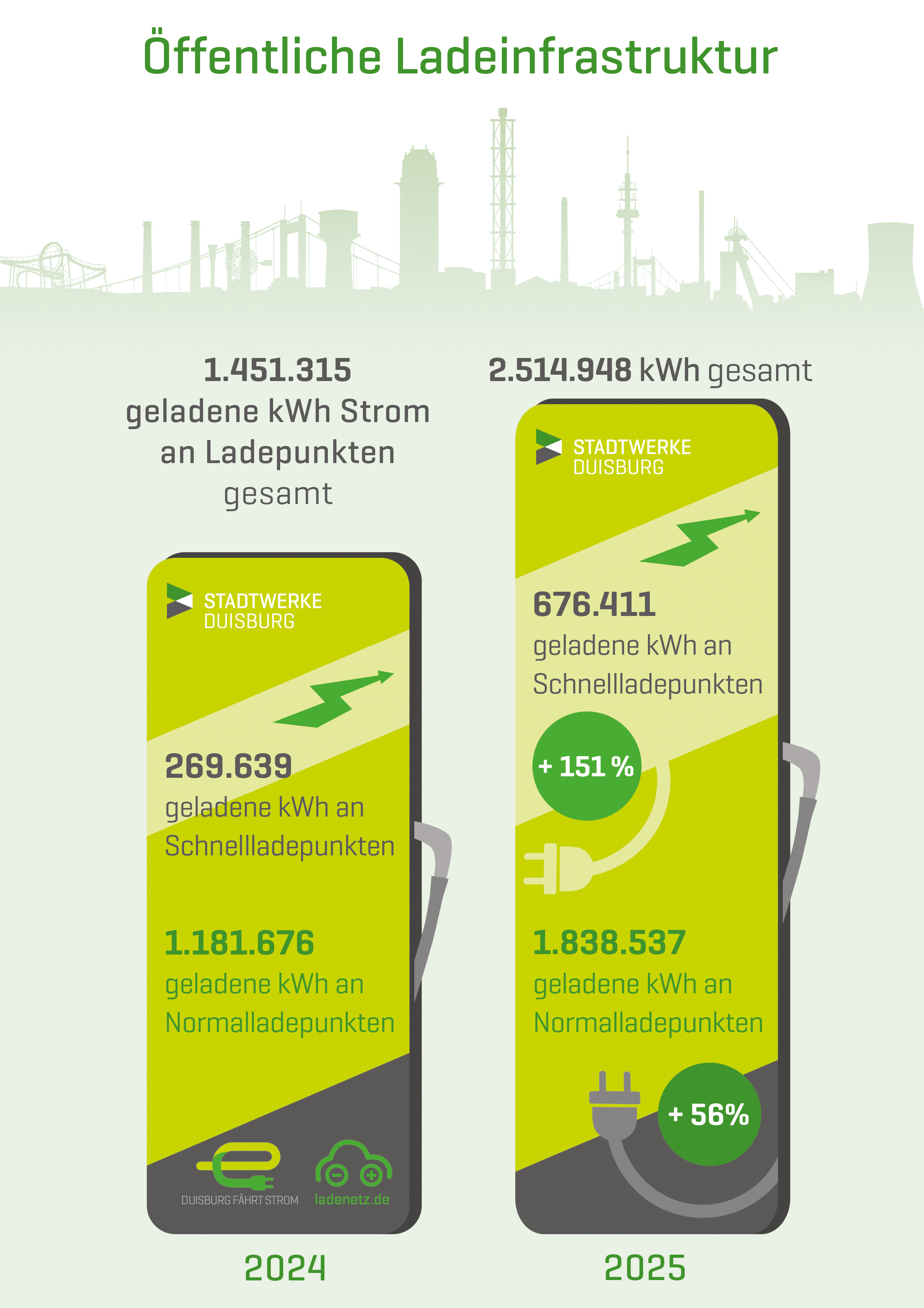 Ladesäulen der Stadtwerke Duisburg gaben 2025 rund 2,5 Millionen Kilowattstunden ab