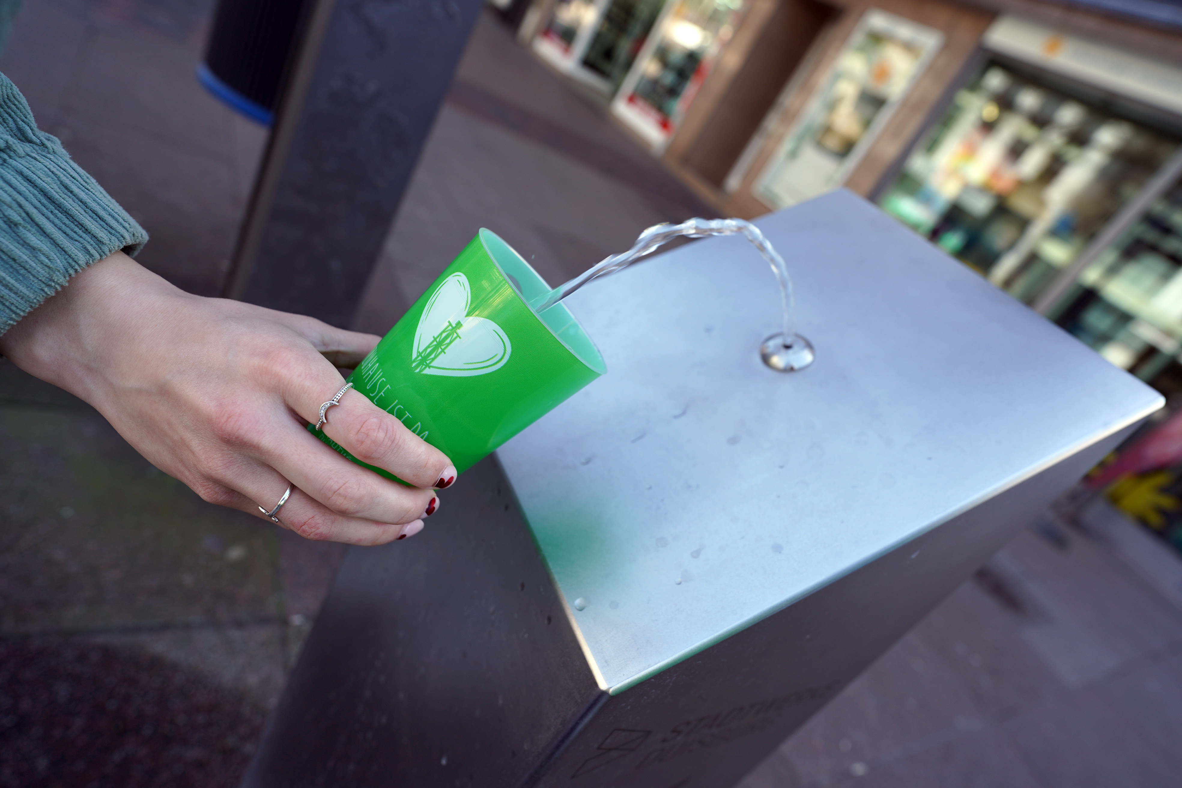Die Trinkwasserbrunnen auf der Königstraße in der Innenstadt sind wieder in Betrieb. Am 22. März ist der internationale Tag des Wassers und steht im Zeichen des Erhalts der Gletscher.